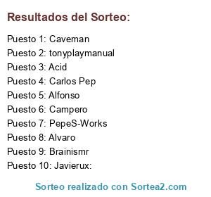 Lista de participantes: Alfonso, Alvaro, Carlos Pep, Acid, Caveman, tonyplaymanual, Campero, Brainismr, Javierux:, PepeS-Works.