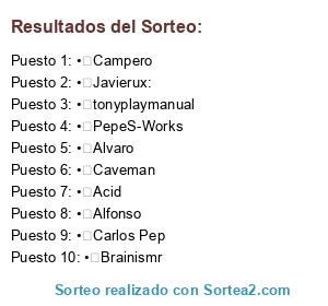Lista de participantes: • Alfonso, • Alvaro, • Carlos Pep, • Acid, • Caveman, • tonyplaymanual, • Campero, • Brainismr, • Javierux:, • PepeS-Works.