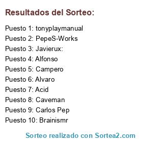 Lista de participantes: Alfonso, Alvaro, Carlos Pep, Acid, Caveman, tonyplaymanual, Campero, Brainismr, Javierux:, PepeS-Works.