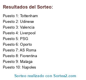 Lista de participantes: Napoles, AS Roma, Malaga, PSG, Fiorentina, Udinese, Liverpool, Tottenham, Valencia, Oporto.