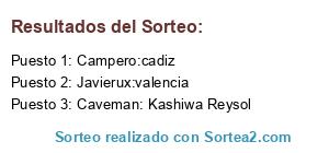 Lista de participantes: Caveman: Kashiwa Reysol, Campero:cadiz, Javierux:valencia.