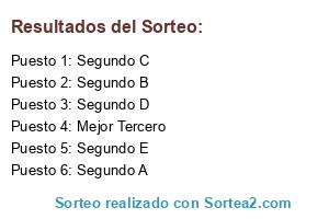 Lista de participantes: Segundo A, Segundo D, Mejor Tercero, Segundo C, Segundo B, Segundo E.