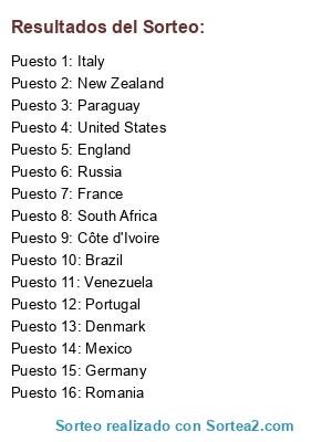Resultados del sorteo: