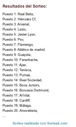 Resultados del sorteo: