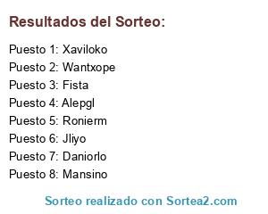 Lista de participantes: Xaviloko, Emilich, Lionheart, Alepgl, Negri, Jliyo, Fista, Jamfus, Wantxope, Daniorlo, Mansino, Ronierm.