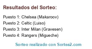 Lista de participantes: Chelsea (Makaroov), River Plate (Adriortiz), Manchester City (Gravesen), Fiorentina (Peperecre), Celtic (Luiso), Inter Milan (Gravesen), Atletico Madrid (Daniorlo), Venezia (Emilich), Rangers (Migueche), Psg (Damiolp)..