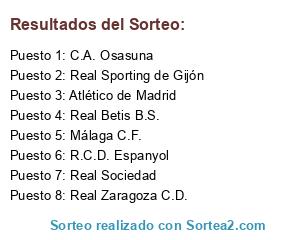 Resultados del sorteo: