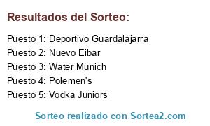 Lista de participantes: Vodka Juniors, Nuevo Eibar, Deportivo Guardalajarra, Water Munich, Polemen's.