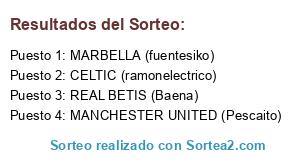 Lista de participantes: MARBELLA (fuentesiko), CELTIC (ramonelectrico), REAL BETIS (Baena), MANCHESTER UNITED (Pescaito).