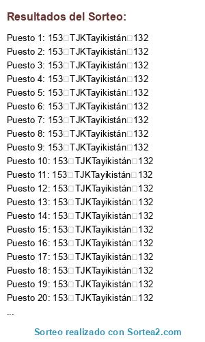 - 153 TJKTayikistán 132 - 133 DOMRepública Dominicana 198