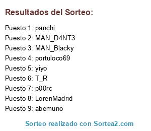 Lista de participantes: portuloco69, p00rc, abemuno, MAN_Blacky, yiyo, T_R, MAN_D4NT3, panchi, LorenMadrid.