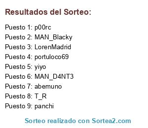 Lista de participantes: abemuno, yiyo, T_R, portuloco69, panchi, MAN_Blacky, MAN_D4NT3, p00rc, LorenMadrid.
