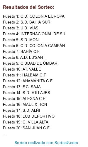 Lista de participantes: SAN JUAN C.F., R. UNIÓN DE HURIÓN, S.D. ALÑI, DEPORTIVO MALÍN, AHAMÁNITA C.F., PANES DEL MONTE C.F., U.D. BABUNÁN, ALEXNA C.F., HALBAM C.F., MALÍN COSTA U.D., C.D. COLONIA EUROPA, PTO. CHICO C.F., R. COLONIAS C.F., HOLIMPA C.F., R.C. HANTIPA, S.D. BAHÍA SUR, LUB DEPORTIVO, C. VILLA ALTA, S.D. MON, BRUJAS C.F., AT. VALLE, S.D. MILLAJES, A.D. LU'SAN, CALLÉS A.D., U.D. VÍAS, C.D. COLONIA CAMPÁN, F.C. SAJA, BAHÍA C.F., U.D. CABO DEL SUR, CIUDAD DE ÚMBAR, MAULIX HON, INTERNACIONAL DE SU.