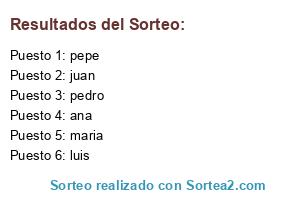 Lista de participantes: juan, pedro (2 participaciones), pepe (3 participaciones), luis (3 participaciones), ana, maria , maria.