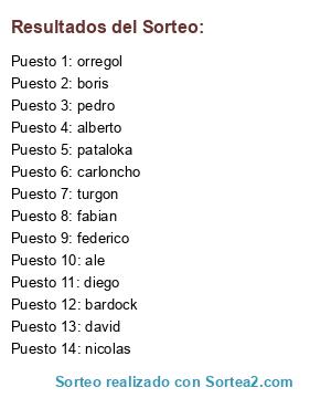 Resultados del sorteo: