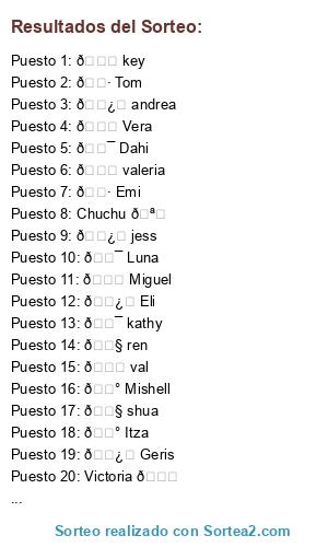 Lista de participantes: πΏοΈ Eli, π§ domi, πΏοΈ Geris, π· Tom, π abicita, π maris, πΏοΈ Jeth, π― Avril, π§ lin, π° Delfi, guillermo π°, anna π°, Amanda π―, π° Juan, Camila π°, π· Ae, π° Itza, π Juli, π― Karen, π· Gabi, rihanna π§, π· sam, π· Mical, πΏοΈ Nico, πΏοΈ Feli, Valeria π·, Chuchu πͺ, π· Dashie, π val, πΏοΈ andrea, Canila π―, π§ Sofia, π― kathy, π ashlee, π angie, πΏοΈ JazmΓn, π° juli, π lari, πΏοΈ jess, Lu π΅π»ββοΈ, π΅π»ββοΈ Jero, π΅π»ββοΈ yoyis, π° lilian, π΅π»ββοΈ fran, Klari π―, πΏοΈ Sandra, π° Ari, π― River, π― Nath, π§ ivanna, Sofi π―, π― Valen, π― ale, Esther π΅π»ββοΈ, π· Lila, π cyn, π― SofΓa, πΏοΈ Jenn, Luis π·, π― Luna, Ana πΏοΈ, π° shari, πΏοΈ Lia, π lobri, π Pau, π Diana, π Patricia, Danna π§, π Katz, π key, π Gaby, π΅π»ββοΈ meli, π Tefy, π΅π»ββοΈ sara, π Valentina, marie π, π keli, Stefani π, π Rose, π Pindy, π valenn, π Danna, π jari, π Ale, π iri, Luchi π·, πΏοΈ vale, π Sebastian, π david, Carlitos π, Emanuel π, π΅π»ββοΈ Paty, π§ Lenny, π΅π»ββοΈ melissa h, π΅π»ββοΈ arcott, π§ Emily, π LuzDa, π jemi, Dani π―, π΅π»ββοΈ Alexandra, π Alex, π danie, πΏοΈ Kath, π· ian, π Brian, π Luis, π Manu, ailenis πΏοΈ, πΏοΈ Mikagalletita, Jhonny π―, Barbi π, π§ Ange, Minelly πΏοΈ, Arti π, π· meli, Vivi π§, π§ Elizabeth, π§ ryry, Brigith π, Aurora πΏοΈ, π· AarΓ³n, π΅π»ββοΈ sebastian, joseth π, π valeria, π§ reny, Sunny π°, π΅π»ββοΈ guille, π SHAUN, π΅π»ββοΈ Eliud, π― Dahi, π Edson, π· Adriana, π― Joss, πΏοΈ ely, π° Emely, π― Alejandro, π§ JaviersiΓ±o, π Miguel, π· haye, π§ iris, Sky πΏοΈ, Victoria π, π· Emanuel, π· Isa, π· David, π― lenny, π Bruno, Lisa π, π pablo, π° Valen, π― Montserrat, π΅π»ββοΈ Andrea, π Ramses, π° GΓ©nesis, π° May, π§ ren, π§ Mari, Tomas π, π§ Rudy, π· Emi, π― bee, π° javiera, π° gio, π° Mishell, π° Alma, π° sam, π° thaiz, π Vera, π΅π»ββοΈ Celeste, π Mariana, πΏοΈ mia, Eli π, π danisaurus, π clari, rayo π, π§ shua, Keila π, π΅π»ββοΈ ari, π΅π»ββοΈstiven, π§oscar, π§lili, π―priscila, πRose, π§karla.