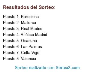 Lista de participantes: Barcelona, Mallorca, Atlético Madrid, Las Palmas, Celta Vigo, Valencia, Real Madrid, Osasuna.