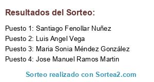 - 2016-08-15 10:46:37 (GMT): Se modifica el sorteo (los participantes y ganadores permanecen intactos)