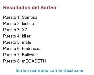 Lista de participantes: Somosa, Federicoa, X7, killer, bichito, mate, mEGADETH, Ballester.