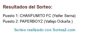 Lista de participantes: CHANFUMITO FC (Yeifer Serna), PAPERBOYZ (Vallejo Ockaña ).