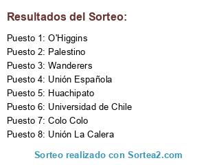 Lista de participantes: Colo Colo, Universidad de Chile, Wanderers, Huachipato, Unión La Calera, O'Higgins, Palestino, Unión Española.