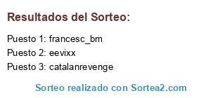 Lista de participantes: finn_ming, randallflaggcat, eevixx, xevi_s, francesc_bm, el_vic_ibanez, ladymcs, gufolove, ru_fino78, pulgatejana, dringui, ximerliu, 4xsample, fiver_g, catalonia360, shendeluth, trempatsupf, mironet, drfelip, regisergi, fur4nk58, gameplayer526, otaiosan, sobekkais, gery_bs80, titafreda, catalanrevenge, bobstreet103, mutinycat.