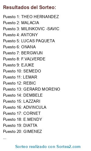 Lista de participantes: E.MENDY, ONANA, LAZZARI, ADVINCULA , SEMEDO, GIMENEZ, THEO HERNANDEZ, MALACIA, A. DAVIES, MILINKOVIC -SAVIC, LUCAS PAQUETA , F.VALVERDE, LEMAR, EJUKE, CORNET, DIATTA, DEMBELE, REBIC, GERARD MORENO, BERGWIJN, ANTONY.