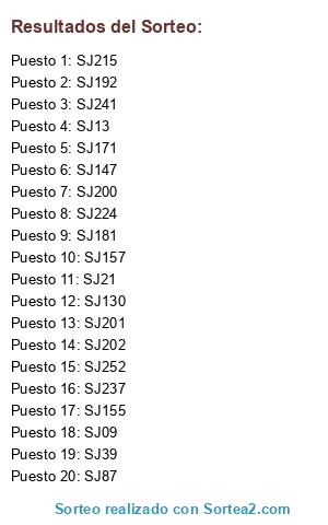 Resultados del sorteo:
