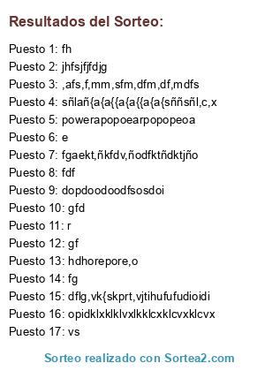 Lista de participantes: jhfsjfjfdjg, gf, fg, fh, fdf, hdhorepore,o, r, e, vs, gfd, fgaekt,ñkfdv,ñodfktñdktjño, dflg,vk{skprt,vjtihufufudioidi, dopdoodoodfsosdoi, opidklxklklvxlkklcxklcvxklcvx, ,afs,f,mm,sfm,dfm,df,mdfs, powerapopoearpopopeoa, sñlañ{a{a{{a{a{{a{a{sññsñl,c,x.