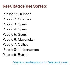 Lista de participantes: Bucks(6), Celtics(7), Grizzlies(3), Hawks(4), Jazz(5), Mavericks(5), Spurs(7), Thunder(10), Timberwolves(5).