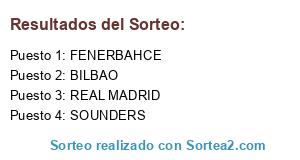 Lista de participantes: REAL MADRID, SOUNDERS, FENERBAHCE, BILBAO.