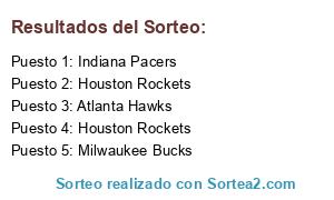 Lista de participantes: Atlanta Hawks(149), Cleveland Cavaliers(133), Houston Rockets(1200), Indiana Pacers(129), Milwaukee Bucks(163).