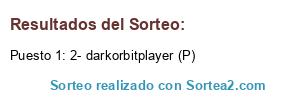 Lista de participantes: 1- Und3r (P), 2- darkorbitplayer (P), 3- yo_mono (P), 4- RomitaX (P), 5- alamm24 (P), 6- fantasma64 (P), 8- qcslego (P), 9- chango64, 10- ManinoGuerra, 11- Hellotot0 (P), 12- DemI (P), 13- SanTiagOD (P), 14- maxiosuna (P), 15- chango64 (P), 16- alamm24 (P), 17- truco23 (P), 18- yo_mono (P), 19- Matt1983 (P), 20- alesitolp (P), 21- qcslego (P), 22- ChavitoArg (P), 23- bohemiocaa (P), 24- truco23 (P), 25- ulisessoad (P), 26- F0x_Zer0 (P), 27- bohemiocaa (P), 28- C-ZeroX (P), 29- El_Chistoso (P), 30- alfalfa_jones (P), 31- pablocs09 (P), 32- Dieguis!!! (P), 33- darkorbitplayer (P), 34- darkorbitplayer (P), 35- JNhard (P), 36- truco23 (P), 37- DemI (P), 38- RomitaX (P), 39- DemI (P), 40- ulisessoad.