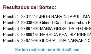 Resultados del sorteo: