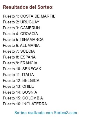 Resultados del sorteo: