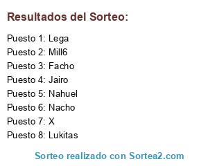 Lista de participantes: Jairo, Lega, Lukitas, Nacho, Mill6, Nahuel, Facho, Morens.