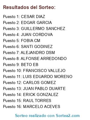 Lista de participantes: EARLYPANIC, SELEEEEE, SES, CJCHICA , EIJOLSIETE, CLEMENZA , GRANDIOUSEGUSS , FIFIRICHI , BRENES29 , JUGON24.