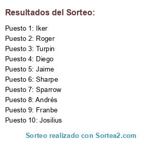 Lista de participantes: Andrés, Diego, Franbe, Iker, Jaime, Sparrow, Josilius, Roger, Turpin, Sharpe.
