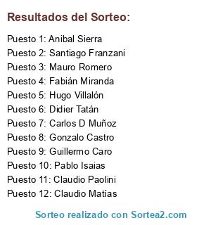 Lista de participantes: Claudio Matías, Hugo Villalón, Mauro Romero, Gonzalo Castro, Anibal Sierra, Didier Tatán, Pablo Isaias, Santiago Franzani, Claudio Paolini, Fabián Miranda, Guillermo Caro, Carlos D Muñoz.