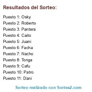 Resultados del sorteo: