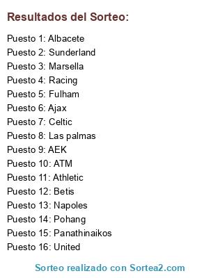 Resultados del sorteo: