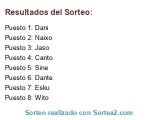 Lista de participantes: Wito, Dani, Jaso, Naixo, Esku, Sine, Canto, Dante.