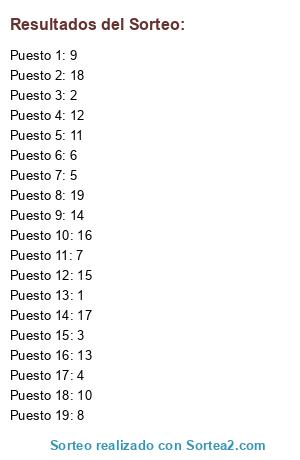 Lista de participantes: 1, 2, 3, 4, 5, 6, 7, 8, 9, 10, 11, 12, 13, 14, 15, 16, 17, 18, 19.