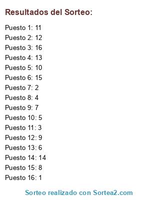 Lista de participantes: 1, 2, 3, 4, 5, 6, 7, 8, 9, 10, 11, 12, 13, 14, 15, 16.