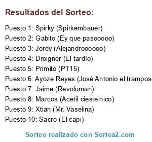 Lista de participantes: Primito (PT15), Jordy (Alejandroooooo), Marcos (Acetil ciesteinico), Gabito (Ey que pasooooo), Sacro (El capi), Spirky (Spirkembauer), Jaime (Revoluman), Droigner (El tardío), Xtian (Mr. Vaselina), Ayoze Reyes (José Antonio el tramposo).