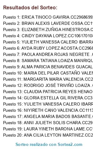 Resultados del sorteo: