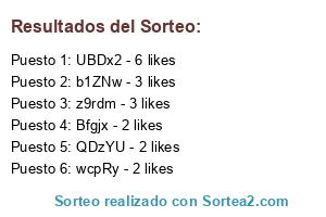 Lista de participantes: UBDx2 - 6 likes, wD6Cp - 5 likes, 98GPx - 5 likes , gpD2U - 5 likes , AuFvY - 4 likes , z9rdm - 3 likes , b1ZNw - 3 likes , QDzYU - 2 likes , Bfgjx - 2 likes , wcpRy - 2 likes, .