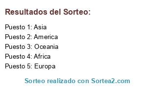 Lista de participantes: Africa, America, Asia, Europa, Oceania.