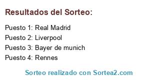 Lista de participantes: Bayer de munich, Liverpool, Rennes, Real Madrid.