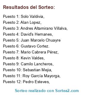 Lista de participantes: David's Hernanes,, Sebastian Mejia,, Alan Lopez,, Camilo Lancheros,, Solo Valdivia,, Kevin Valdes,, Andres Altamirano Villalva,, Roy García Mayorga,, Pedro Esteves,, Mario Cabrera Pérez,, Juan Marcelo Chuayre, Gustavo Cortez..